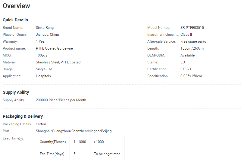 Stainless Steel Guidewire